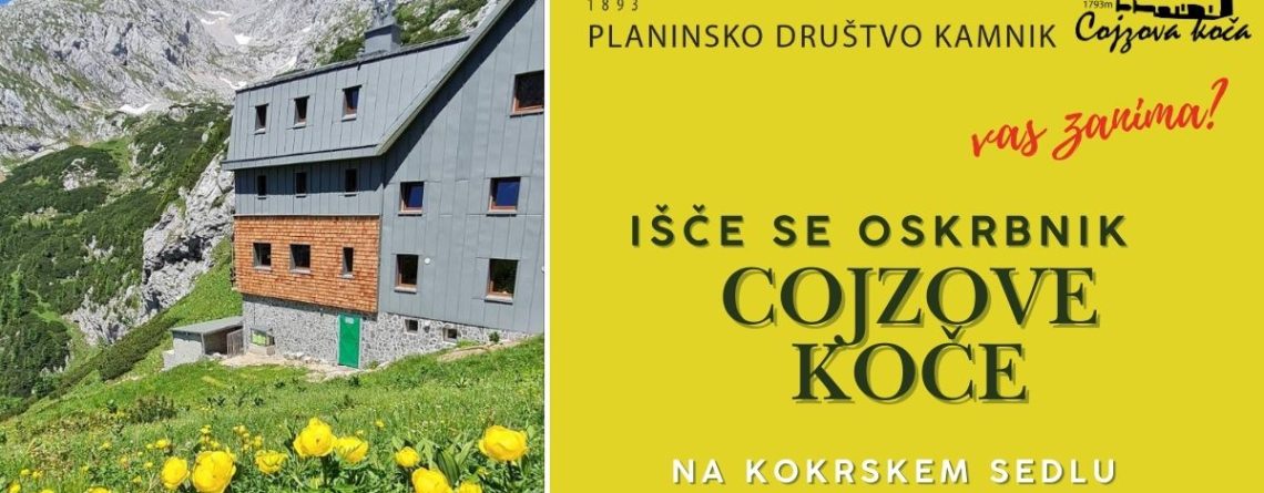 Planinsko društvo Kamnik razpisuje odprt razpis za mesto oskrbnika Cojzove koče na Kokrskem sedlu.