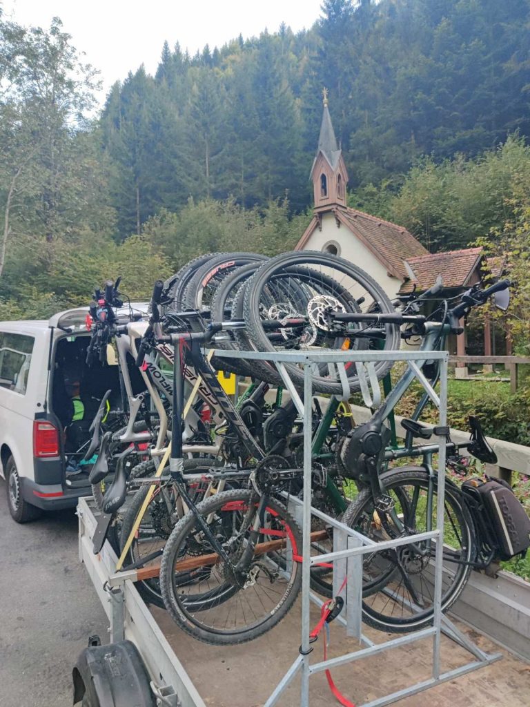 V soboto, 20.septembra 2025 se nas je prva skupina odpeljala proti Gradcu in naprej do Mosta na Muri. Odpravili smo se na gorsko kolesarsko turo v lastni režiji. Skupina sedmih kolesarjev smo odpeljali čudovito turo nad reko Muro. Kolesarili smo mimo vrha Kamerberga do planine Schweizeben in v slabih 15 kilometrih opravili nekaj manj kot 700 višinskih metrov. Spet smo zložili kolesa na našo prikolico in nadaljevali pot v Trofaiach kjer so nas pričakali domači planinci in kolesarji ter druga skupina kolesarjev in pohodnikov iz Kamnika. Preživeli smo prijeten večer katerega se je udeležil tudi predstavnik občine Trofaiach in predsednik Naturefreunde.